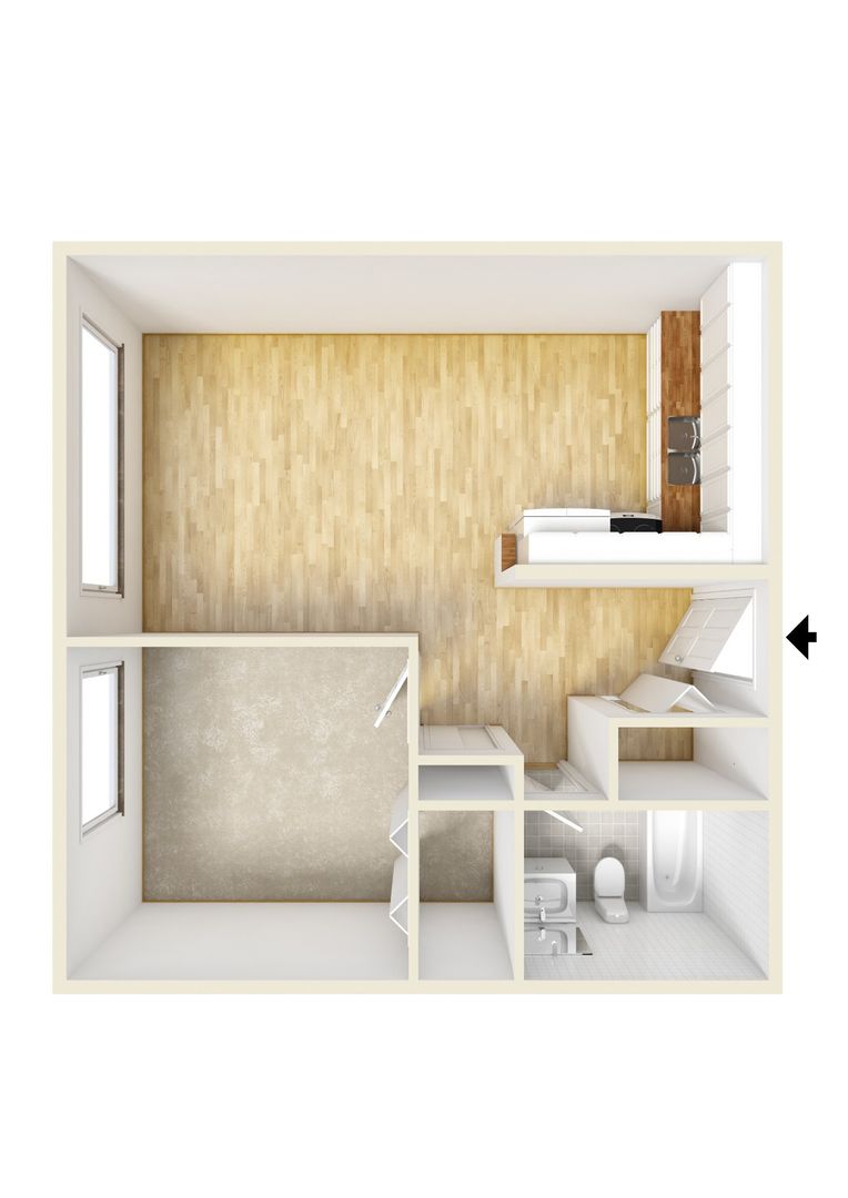 1 Bedroom, 1 Bathroom Apartment